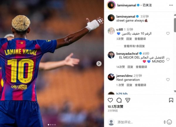10号运动活动 服 显眼!亚马尔社媒晒本场照片:又一场出色 赛事 !