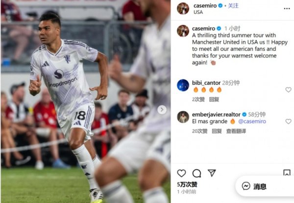 卡塞米罗社媒:很高兴见到所有美国球迷,感谢你们再次给予的欢迎