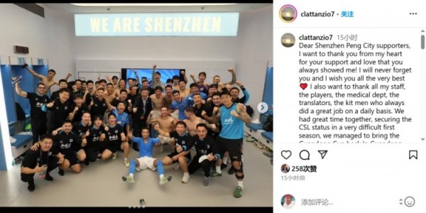 拉坦齐奥告别深圳新鹏城:你们将永远留在我心中🙏🏻❤️