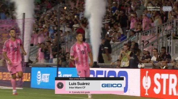 点射双响!苏亚雷斯当选迈阿密国际2-1老虎大学一役全场最佳