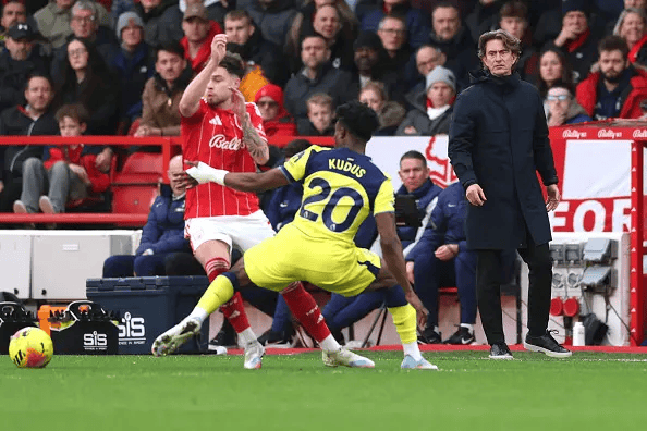 虎扑12月15日讯英超职业联赛 ,森林3-0热刺。热刺球员穆罕默德-库杜斯接受采访。