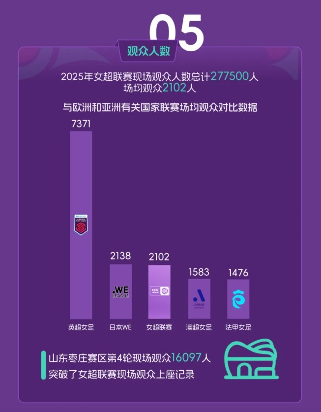 2025女超上座率位于亚洲前列,仅次于日本WE职业联赛