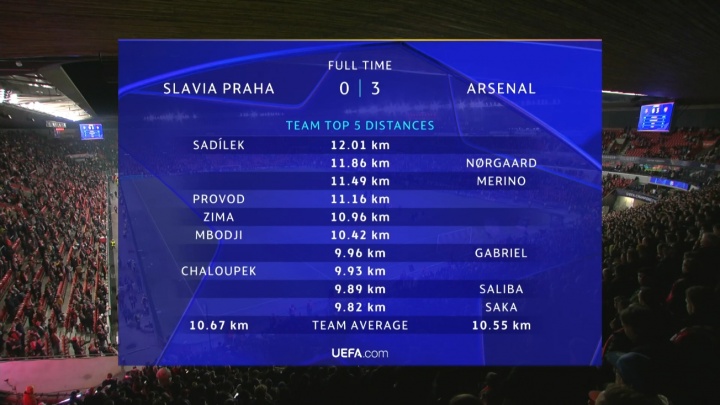 阿森纳球员本场移动距离 榜:诺尔高11.86km最多,梅里诺次席