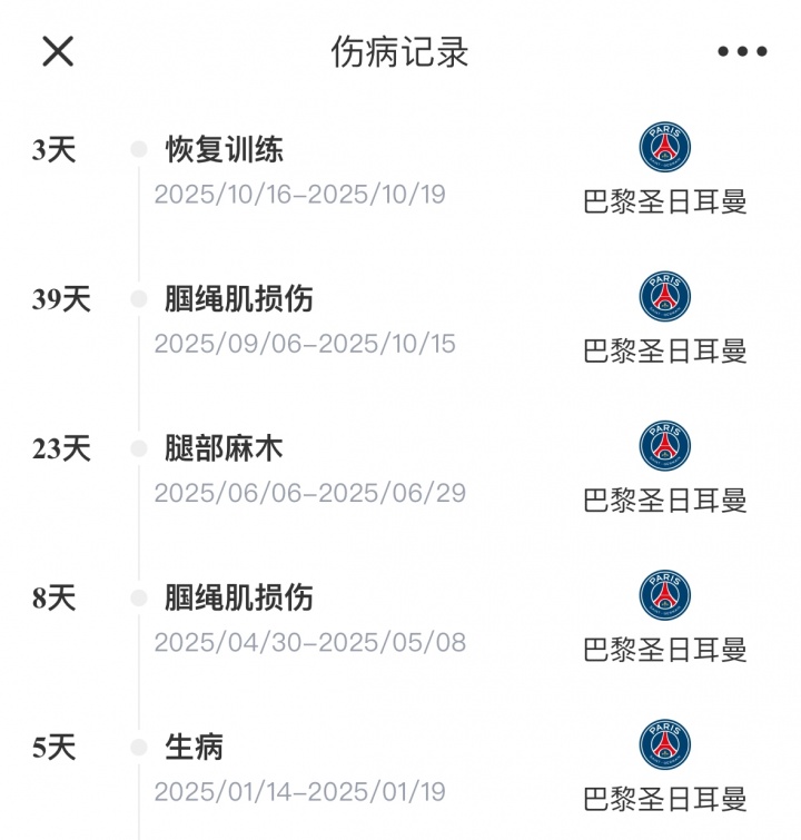 登贝莱今年夺得金球奖,而本赛季他的频繁负伤 不由得让人想起去年的金球先生罗德里,罗德里在重伤过后受伤 不断,本赛季仅为曼城出战6场赛事 。