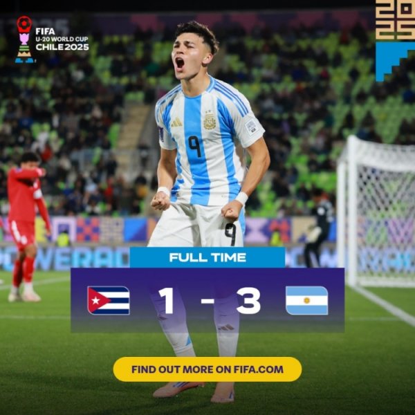 世青赛十人阿根廷3-1古巴取得开门红,萨尔科双响+苏比亚布雷破门